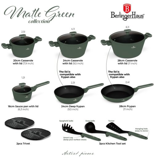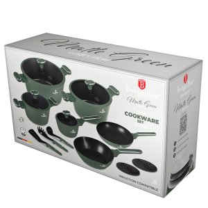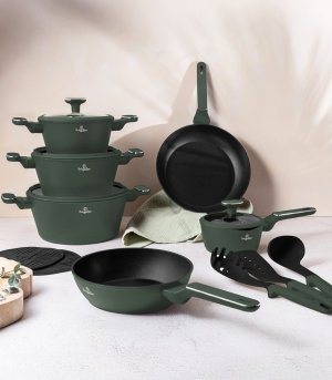 Sada nádobí s titanovým povrchem 15 ks Matte Green Collection – elegance a výkon v jednom