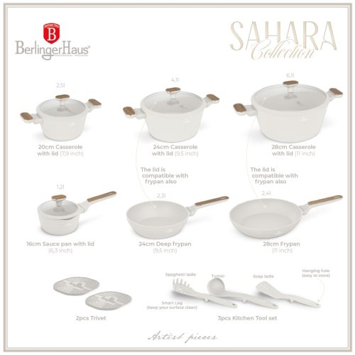 Sada nádobí s titanovým povrchem 15 ks Sahara Nordic Collection BERLINGERHAUS BH-8325
