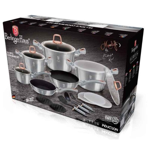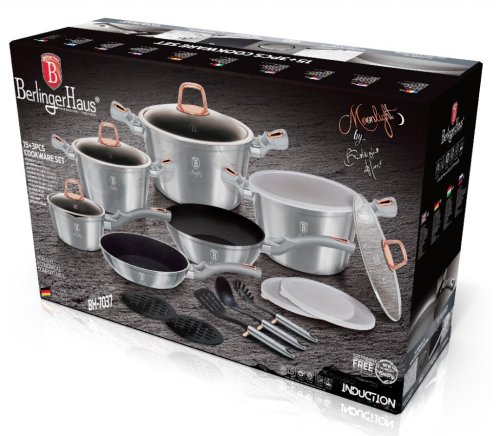 Hledáte vhodnou sadu nádobí do vaší kuchyně? Sadou získáte všechny potřebné nádoby na vaření, ať už budete vařit pro sebe nebo pro více osob. Velkou výhodou je, že můžete objednat najednou více nádobí od ověřeného výrobce BERLINGERHAUS. Sadu nádobí sjednocuje jednotný design, navíc šedá barva celé sady je univerzální a vyjímat se bude v každé kuchyni.
