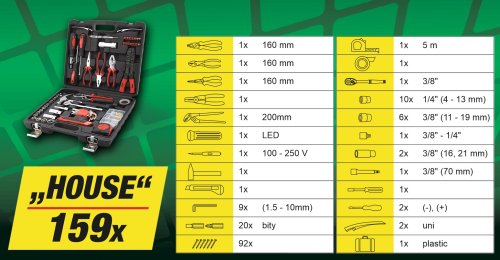 kufřík obsahuje vše potřebné na malé opravy a úpravy v domácnosti.