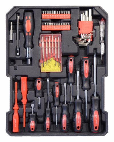 klíčů, kladivo, vodováhu, stranové i imbus klíče, bity, základní
