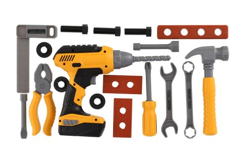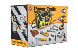 Tato dětská sada nářadí s vrtačkou je ideálním dárkem pro malé kutily, kteří rádi napodobují práci dospělých. Sada obsahuje vše potřebné pro malé opraváře v praktické tašce přes rameno. Hračka je vybavena zvukovými efekty a napájena packem na baterie (3xAAA, nejsou součástí balení), kompatibilní s dalšími nástroji stejné značky. Velikost vrtačky: 16 x 17 cm Rozměr balení: 24 x 17,5 x 12 cm Vhodné pro děti od 3 let