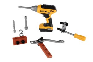 Tato dětská sada nářadí s vrtačkou je ideálním dárkem pro malé kutily, kteří rádi napodobují práci dospělých. Sada obsahuje vše potřebné pro malé opraváře v praktickém plastovém kufříku. Hračka je vybavena zvukovými efekty a napájena packem na baterie (3xAAA, nejsou součástí balení), kompatibilní s dalšími nástroji stejné značky. Velikost vrtačky: 16 x 17 cm Rozměr balení: 26 x 25 x 9 cm Vhodné pro děti od 3 let