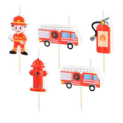 Veselá sada svíček s hasičským motivem — stylová dekorace pro dětské dorty, která ozvláštní každou oslavu.
