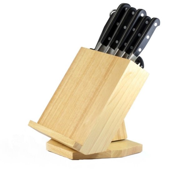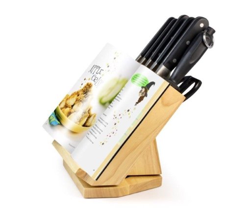 Set obsahuje kuchařský, porcovací a univerzální nůž, ocílku, nůžky, otočný stojan, nůž na pečivo a nůž na zeleninu. Veškeré kuchyňské pomůcky se vám v ruce bezpečně a pohodlně drží. Jsou totiž vybavené ergonomicky tvarovanou rukojetí. Díky kvalitnímu provedení vám sada vydrží po dlouhou dobu.