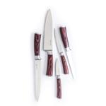 Rukojeti jsou vyrobeny z extra pevného, odolného materiálu nazývaného Pakka wood, při jehož výrobě je dýha z tvrdého dřeva napuštěna teplem tvrzenou pryskyřicí. Výsledkem jsou pevné rukojeti, které nepodléhají zkáze času. Hladké, rovné, čisté linie těchto nožů se stanou ozdobou každé kuchyně.