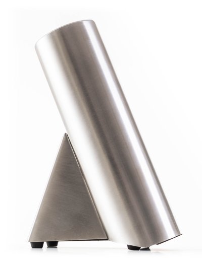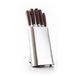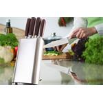 stojánek ve stříbrném provedení. Ve stojánku má každý z nožů své