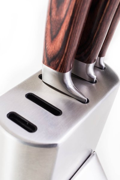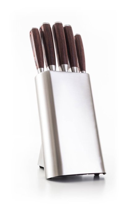 Nevíte kam nože bezpečně uložit? Do stojánku! Součástí sady je designový
