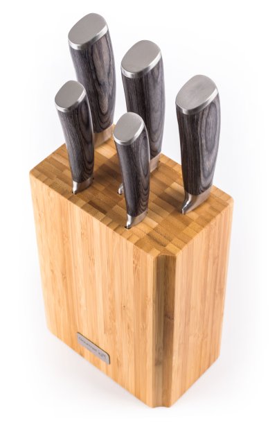 Správná péče o kuchyňské nože prodlouží jejich životnost a ostrost čepelí. Základem správné péče o nože je jejich vhodné ukládání – ideálně do stojanu na nože. Proto k sadě nožů G21 Gourmet Stone dostanete i originální blok na nože z vysoce odolného bambusového dřeva.