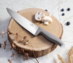 Seznam varování o bezpečnosti kuchyňských nožů a nůžek vychází z požadavků nařízení (EU) 2023/988 o obecné bezpečnosti výrobků (GPSR): 1. Riziko poranění: Buďte obzvláště opatrní při používání nožů a kuchyňských nůžek. Čepele jsou ostré a mohou způsobit vážné poranění. 2. Skladování: Uchovávejte nože a kuchyňské nůžky na bezpečném místě, mimo dosah dětí a neoprávněných osob. Používejte bloky na nože, kryty na čepele nebo speciální zásuvky. 3. Použití: Používejte kuchyňské nože a nůžky pouze podle jejich zamýšleného účelu. Vyhýbejte se nadměrnému tlaku a nesprávným pohybům, které mohou vést ke ztrátě kontroly a poranění. 4. Opatrnost při krájení: Při krájení umístěte prkénko na stabilní povrch, abyste zabránili jeho posouvání. Držte prsty daleko od čepele. 5. Čištění: Čistěte nože a kuchyňské nůžky opatrně pomocí ochranných rukavic. Vyhněte se přímému kontaktu s ostřím. Nevkládejte nože do myčky nádobí, protože vysoká teplota a čisticí prostředky mohou poškodit čepel a rukojeť. 6. Ostření: Pravidelně ostří nože, aby bylo zajištěno jejich správné fungování a sníženo riziko poranění způsobeného používáním tupých nástrojů. Ostříhejte nože pomocí vhodných ostřičů, při zachování opatrnosti a podle návodu. 7. Oprava: Nepoužívejte poškozené nože a kuchyňské nůžky. Odevzdejte je k opravě nebo je vyměňte za nové. 8. Likvidace: Bezpečně likvidujte opotřebované nebo poškozené nože a kuchyňské nůžky, abyste zabránili náhodnému poranění. Chraňte čepel před vyhozením. 9. Přenášení: Při přenášení nožů a kuchyňských nůžek používejte kryty na čepele nebo speciální pouzdra, abyste zabránili náhodnému poranění.