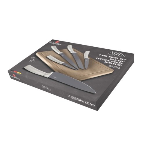 Sada nožů s nepřilnavým povrchem a prkénkem 6 ks Aspen Collection BH-2846