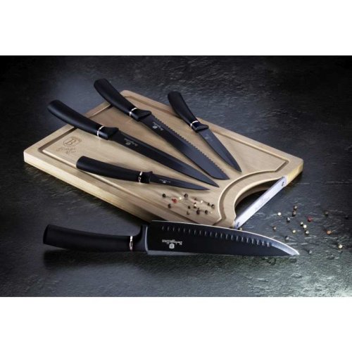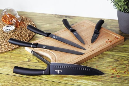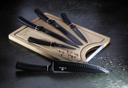 Sada nožů s nepřilnavým povrchem + prkénko 6 ks Black Silver Collection BH-2549