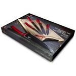 Prakticky vybavená sada nožů z kolekce Burgundy Metallic. V sadě najdete 5 nejpoužívanějších kuchyňských nožů a navíc velké bambusové prkénko s logem značky. Nerezové nože jsou potaženy nepřilnavým antibakteriálním povrchem, který je šetrný k potravinám, navíc se při krájení na nože nic nelepí. Ergonomicky tvarovaná rukojeť má na dotek měkčený povrch, který je protiskluzový, nůž se v ruce velmi pohodlně drží a neklouže. Prkénko z bambusového dřeva s drážkou pro odtékání šťáv lze pohodlně vzít za rukojeť a krájené potraviny přemístit rovnou do hrnce.