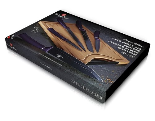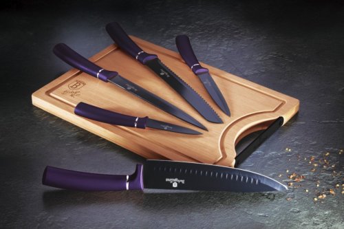 Sada nožů s nepřilnavým povrchem + prkénko 6 ks Purple Metallic Line je výbornou alternativou pro kuchaře různých úrovní, na jejíž výrobu byl použit kvalitní materiál: nerez ocel s nepřilnavým povrchem, vynikají perfektní ostrostí čepele a designem. Velmi oceníte i ergonomicky tvarovanou rukojeť, díky které se vám nože budou skvěle držet. Celá sada je dílem výrobce BERLINGERHAUS, jež se výrobě nožů věnuje poměrně dlouho a jsou řádně odzkoušeny.