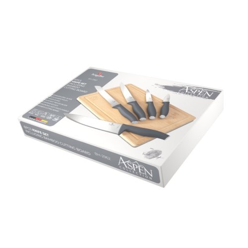 - Materiál: nerezová ocel 3cr13- Nůž na chléb 20 cm- Kuchařský nůž 20 cm- Krájecí nůž 20 cm- Užitkový nůž 12,5 cm- Nůž na okrajování 9 cm- Bambusové prkénko na krájení- Barva: šedá Aspen- vysoce kvalitní …