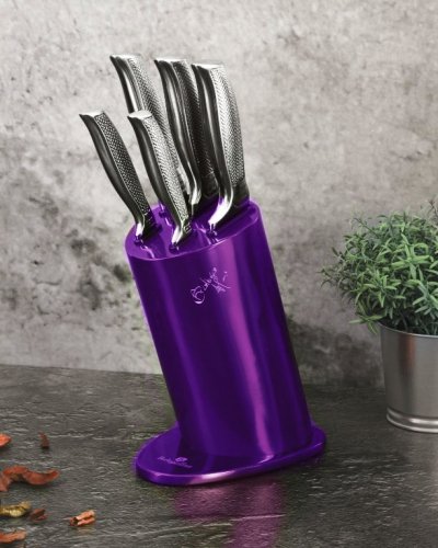 Sada nožů ve stojanu 6 ks Royal Purple Metallic Line Kikoza Collection je výbornou alternativou pro kuchaře různých úrovní, na jejíž výrobu byl použit kvalitní materiál: nerez ocel s nepřilnavým povrchem, vynikají perfektní ostrostí čepele a designem. Velmi oceníte i ergonomicky tvarovanou rukojeť, díky které se vám nože budou skvěle držet. Celá sada je dílem výrobce BERLINGERHAUS, jež se výrobě nožů věnuje poměrně dlouho a jsou řádně odzkoušeny.