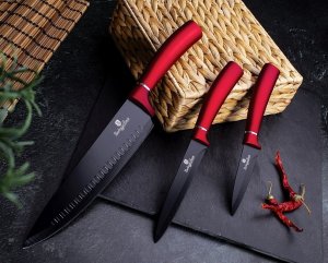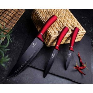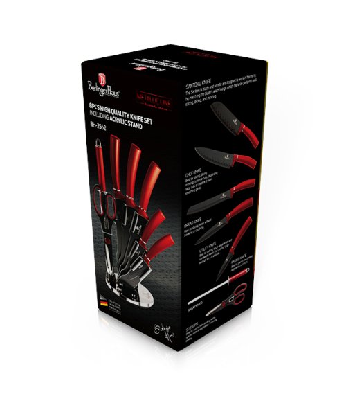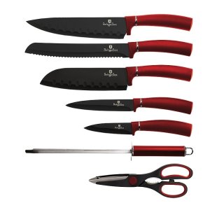 Sada nožů ve stojanu s nepřilnavým povrchem 8 ks Burgundy Metallic Line je výbornou alternativou pro kuchaře různých úrovní, na jejíž výrobu byl použit kvalitní materiál: nerez ocel s nepřilnavým povrchem, vynikají perfektní ostrostí čepele a designem. Velmi oceníte i ergonomicky tvarovanou rukojeť, díky které se vám nože budou skvěle držet. Celá sada je dílem výrobce BERLINGERHAUS, jež se výrobě nožů věnuje poměrně dlouho a jsou řádně odzkoušeny.