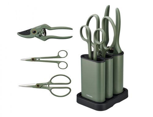 • Sada pro péči o pokojové rostliny Fiskars se třemi nůžkami obsahuje správné nástroje pro přesné zastřihávání a stříhání pokojových rostlin a květin. <br> • Velké nůžky jsou ideální pro stříhaní nejtužších výhonů pokojových rostlin až do průměru 18 mm. <br> • Nůžky prostřihávací na květiny jsou vhodné pro různá tvarování a stříhání pokojových rostlin a květin, mají vestavěný odstraňovač trnů a listů ze stonků. <br> • Nůžky prostřihávací jsou ideální na přesné prostřihávání pokojových rostlin, a to i v hustém porostu. <br> • Každé nůžky mají stylové volně stojící pouzdro, které může stát samostatně nebo může vložit do společného podstavce.
