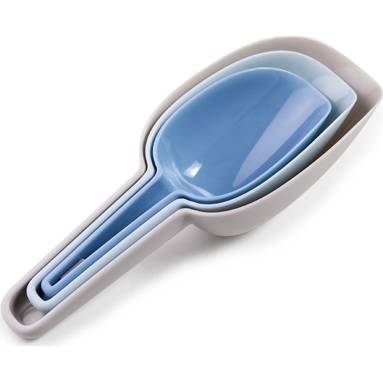 Sada plastových odměrek na sypké potraviny. V sadě 3 ks.