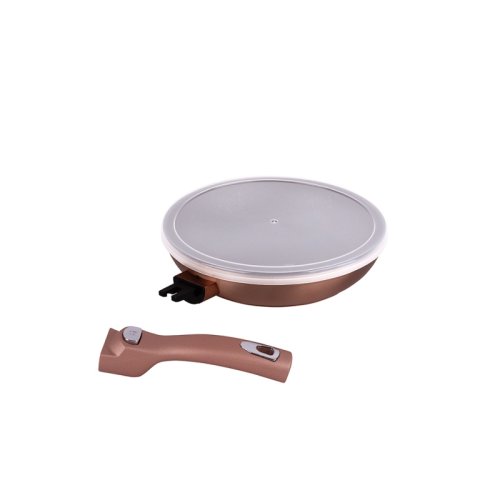 Tato praktická sada pánví s odnímatelnou rukojetí a chytrými víky je ideální pro každodenní vaření. Vyrobené z kovaného hliníku, s nepřilnavým mramorovým povrchem, poskytují dlouhou životnost a snadné použití. Pánve jsou stohovatelné, což šetří místo v kuchyni, a jejich elegantní metalická růžovo-zlatá barva dodá vaší kuchyni moderní vzhled. Jsou vhodné pro všechny typy varných desek včetně indukce a jsou navrženy s ohledem na úsporu energie.