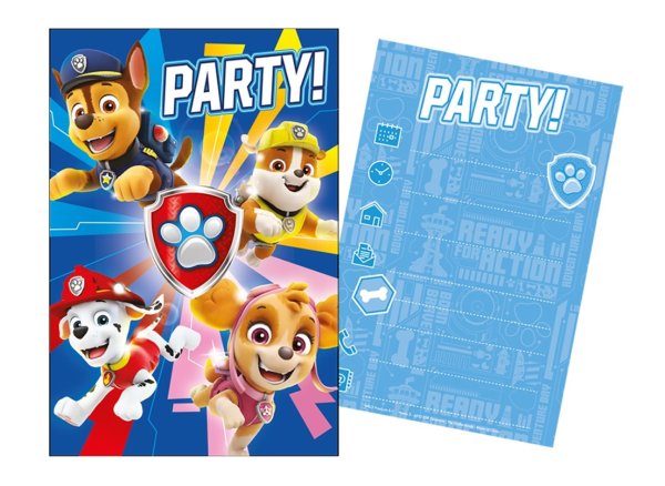 Sada párty pozvánek obsahující 5 krásných pozvánek a 5 obálek na zabalení pozvánek s motivem Paw Patrol/Tlapková patrola, abys mohl/a pozvat všechny své kamarády a kamarádky na svou úžasnou párty 15x10 cm