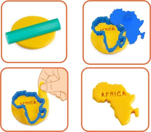 Rozvíjí manuální zručnost, fantazii, kreativitu a umělecké cítění. Zároveň se můžete naučit tvary a názvy světadílů v angličtině a samostatně vytvořit mapu světa, čímž si rozšíříte své geografické znalosti. Modelínu stačí vyválet na tenčí plátek a pomocí vykrajovátka vytvořit zvolený světadíl.