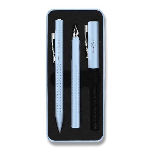 - Plnicí a kuličkové pero v barevně sladěné plechové dárkové krabičce