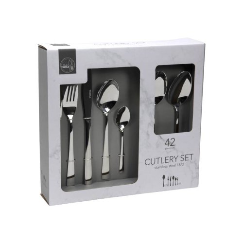 Tento elegantní příborový set je ideální pro vaše večeře a oslavy. Sada je vhodná do myčky na nádobí, ale doporučujeme ji spíše mýt ručně, aby si udržela svůj lesk.Tento příborový set je nejen krásný, ale také praktický. Můžete jej používat každý den nebo na speciální příležitosti. Vaši hosté budou ohromeni jeho kvalitou a stylovým vzhledem. Je vyroben z nerezové oceli a má 42 kusů. Jeho nerezový design dodá vašemu stolu atmosféru a eleganci.Materiál: Nerezová ocel 18/0Počet kusů: 42Design: stříbrnýObsah balení:8 x vidlička8 x lžíce8 x nůž8 x čajová lžička8 x vidlička2 x servírovací lžíce