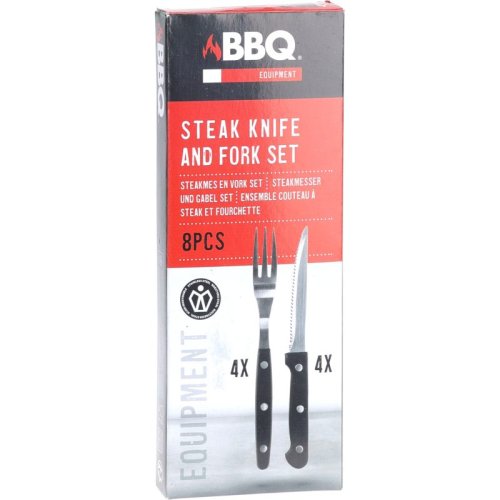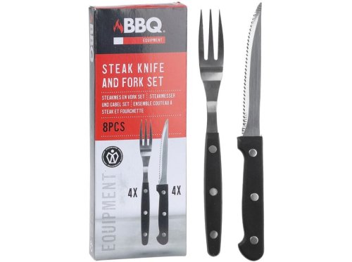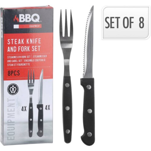 Elegantní a odolná sada steakových nožů a vidliček pro perfektní stolování při grilování, nedělním obědě i slavnostní večeři. Kombinace ostrých čepelí z kvalitní nerezové oceli a pohodlných černých rukojetí z PP plastu zajišťuje skvělý zážitek při každém soustu.