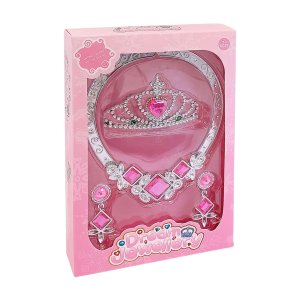 Elegantní sada doplňků, která promění každou malou slečnu v pohádkovou princeznu! Souprava obsahuje korunku, náhrdelník a náušnice ve stříbrné barvě, zdobené zářivými růžovými kamínky.