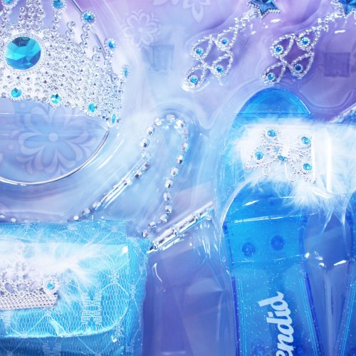 Která z holčiček by nezatoužila potom, stát se alespoň na chvíli krásnou princeznou! Set obsahuje střevíčky, kabelku, čelenku, korunku, náušnice a hůlku. Všechny prvky této sady jsou perfektní doplňky ke kostýmu. Velikost střevíčků je cca 19 cm. Doporučeno pro děvčata od 3 let.