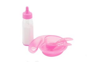 Má Tvá panenka hlad? Dej jí napít z lahvičky s mlékem nebo připrav jídlo do mističky. Sada obsahuje lahev s mlékem, mističku se lžičkou a vidličkou. Rozměr balení: 19 x 22 x 4 cm Vhodné pro děti od 3 let