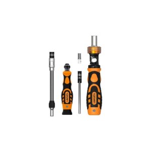 • Sada ručního nářadí pro precizní práci, 31 ks. Nářadí vhodné pro opravy veškeré drobné elektroniky, počítačů, telefonů, hodinářství a další jemnou mechaniku. Základ sady tvoří 1 šroubovák menší s protiskluzným povrchem,1 šroubovák větší s protiskluzným povrchem a ráčnou, 1 flexi prodlužovací nástavec, se kterým se dostanete na nepřístupná místa, 1 pevný prodlužovací nástavec, různé typy bitů různých standartů a rozměrů (Torx, Hex, plochý a mnoho dalších), nástrčné klíče. Sada je uložena v praktickém plastovém uzamykatelném pouzdře a ocení ji jak domácí kutil, tak i opravdový profesionál.