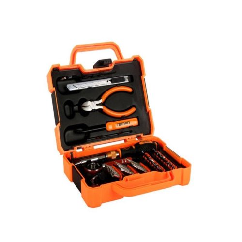 • Sada ručního nářadí pro precizní práci, 47ks. Nářadí vhodné pro opravy veškeré drobné elektroniky počítačů, telefonů, hodinářství a další jemnou mechaniku. Základ sady tvoří šroubovák s protiskluzným povrchem, magnetický prodlužovací nástavec, pinzeta, ráčna, kleště, řezný nůž, škrabka, přísavka a různé typy bitů různých standartů a rozměrů (Torx, Hex, plochý a mnoho dalších). Sada je uložena v praktickém plastovém uzamykatelném pouzdře a ocení ji jak domácí kutil, tak i opravdový profesionál.