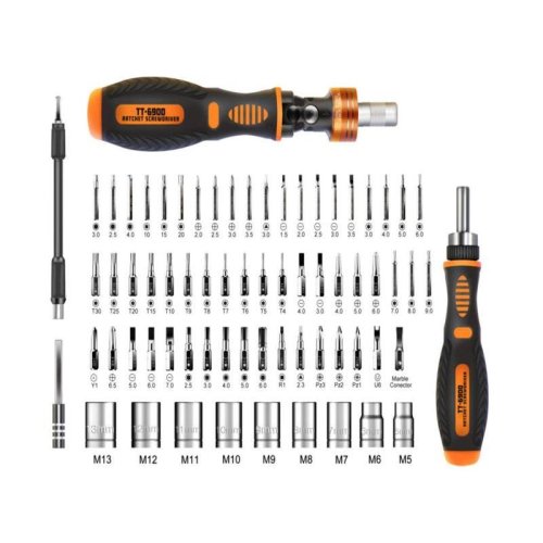 • Sada ručního nářadí pro precizní práci, 69ks. Nářadí vhodné pro opravy veškeré drobné elektroniky, počítačů, telefonů, hodinářství a další jemnou mechaniku. Základ sady tvoří 1 šroubovák menší s protiskluzným povrchem a ráčnou,1 šroubovák větší s protiskluzným povrchem, ráčnou a kloubovou hlavicí s náklonem 180°, 1 flexi prodlužovací nástavec, se kterým se dostanete na nepřístupná místa, 1 pevný prodlužovací nástavec, různé typy bitů různých standartů a rozměrů (Torx, Hex, plochý a mnoho dalších), nástrčné klíče. Sada je uložena v praktickém plastovém uzamykatelném pouzdře a ocení ji jak domácí kutil, tak i opravdový profesionál.