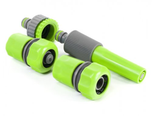 Čtyřdílná souprava na zavlažování se skládá z: zavlažovače s regulací, hadicové průchozí rychlospojky 3/4, hadicové rychlospojky se stop ventilem 3/4 a adaptéru s vnitřním závitem s redukcí 3/4 - 1. Vyrobeno z ABS plastu.