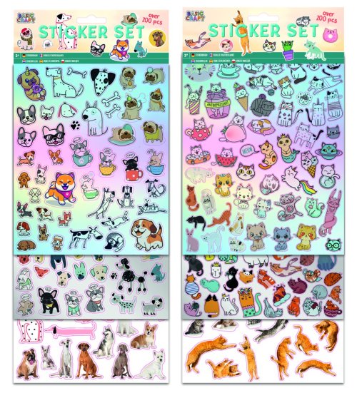 Sada samolepek mega pejsci/kočičky – sada obsahuje 100 ks sampolek. Dva druhy – pejsci a kočičky.