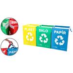 Šikovné tašky na tříděný odpad Sort Easy jsou barevně odlišené podle druhu odpadu – žlutá na plast, zelená na sklo a modrá na papír. Hodí se do každého bytu, domu, chaty nebo garáže. Tašky jsou vyrobeny z netkané textilie čímž jsou snadno udržovatelné a omyvatelné. Po obou stranách jsou opatřeny suchým zipem, který umožňuje tašky vzájemně pospojovat v libovolném pořadí. Jednotlivé tašky mají objemem 36 litrů. Všechny tašky jsou vybaveny pevnými uchy, takže v momentě, kdy se taška naplní, můžete ji pohodlně odnést a vysypat do příslušného kontejneru. V případě potřeby uskladnění je možné tašky snadno složit naplacato a uklidit, takže zabírají minimum místa.