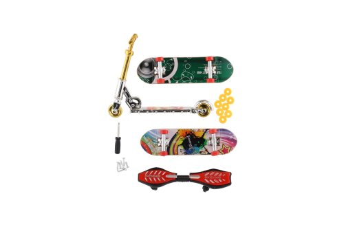 Provádějte a naučte se nové triky na mini skateboardu (2ks), waveboardu, bruslích a koloběžce. Skateboardy jsou šroubovací s potřebnými doplňky. Vyberte si svoji variantu a zažijte nekonečnou zábavu. Rozmě balení: 16 x 30 cm Vhodné od 3 let