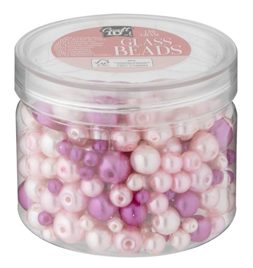 Sada skleněných korálků 4 odstíny růžové 130 gramů