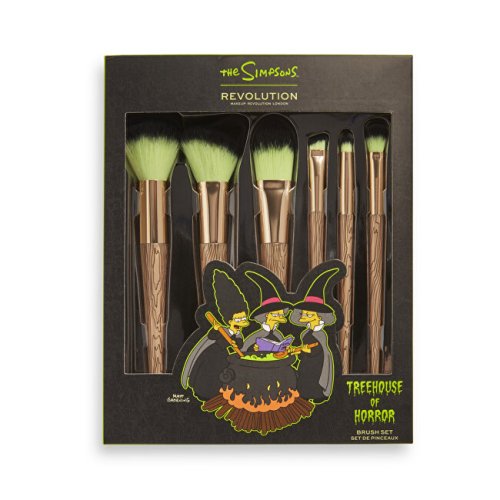 Makeup Revolution přichází se strašidelnou kolekcí The Simpsons Treehouse of Horror. Sada inspirovaná sestrami čarodějkami obsahuje tři štětce na obličej a tři štětce na oči. Měkké štětiny umožňují hladké nanášení krémových, tekutých i pudrových produktů, což je zásadní pro každého fanouška kolekce Simpsons Treehouse of Horror.