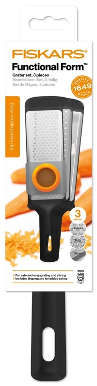 Set obsahuje jemné, hrubé struhadlo a plátkovač na zeleninu. Jemné struhadlo je ideální pro snadné strouhání na jemno. Obsahuje chránič prstů pro větší bezpečnost. Výška: 59 mm, délka: 320 mm, šířka: 83 mm, hmotnost: 156 g. Hrubé struhadlo je ideální pro snadné strouhání na hrubo. Obsahuje chránič prstů pro větší bezpečnost. Výška: 58 mm, délka: 320 mm, šířka: 83 mm, hmotnost: 156 g. Plátkovač na zeleninu je ideální pro tvorbu plátků. Obsahuje chránič prstů pro větší bezpečnost. Výška: 59 mm, délka: 320 mm, šířka: 83 mm, hmotnost: 173 g.