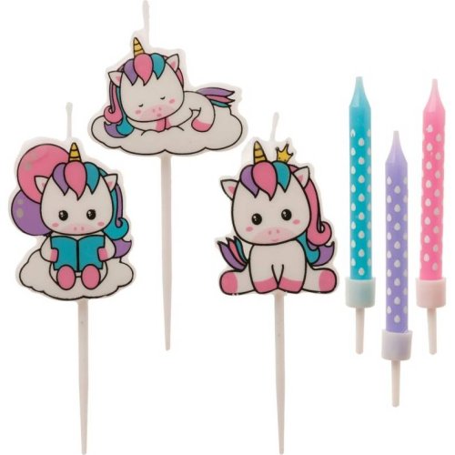 Sada svíček s motivem jednorožce. V balení 15 ks.