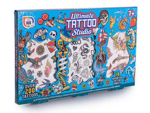 Tetovací studion The Ultimate modré – objevte svět dočasných tetování s touto sadou , která nabízí více než 200 různých vzorů. Od veselých pirátů, barevných mořských vln až po různé postavičky a zvířata, možnosti jsou téměř nekonečné. V balení najdete 14 různých tetovacích archů, které se snadno aplikují a jsou bezpečné pro pokožku. Ať už plánujete večírek, tematickou párty nebo jen chcete něco vyzkoušet, tato tetování jsou perfektním doplňkem. A když se rozhodnete pro změnu, můžete je jednoduše beze zbytku odstranit. Sada je ideální pro děti od 7 let.