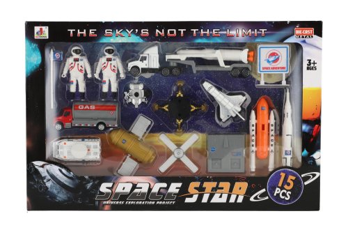 Krásná velká vesmírná sada pro malé kosmonauty. Touží se vaše dítko stát kosmonautem? Vesmírná sada přináší dětem možnost si hrát na let raketoplánu do vesmíru. Tato sada obsahuje 15ks. Rozměr krabice: 43 x 28 x 4 cm Vhodné pro děti od 3 let
