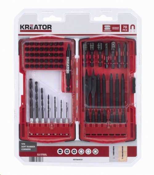 V této 70dílné sadě vrtáků a šroubovacích bitů najdete nepochybně to správné příslušenství pro všechny vaše vrtačky a šroubováky: PH bity, PZ bity, T bity, v různých velikostech, držáky bitů, vrtáky do dřeva a kovu, nástrčné klíče. Sada je dodávána v praktickém pouzdru s pogumovanými rohy o rozměru 193 x 113 x 53 mm.