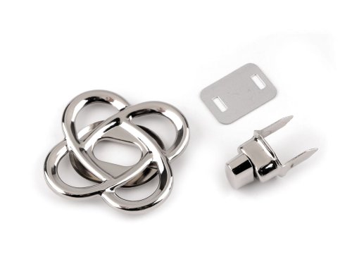 Designové otočné zapínání oceníte díky praktičnosti a jednoduchosti. Využijete ho na kabelky, tašky nebo městské batohy. Návod na použití: 1) Podle nožiček na otočné části si vyznačíme průřezy a prostřihneme látku. 2) Nožičky prostrčíme tak, aby projely látkou a vykoukly na rubové straně. 3) Na nožičky nasadíme kovový protikus a nožičky roztáhneme do stran. 4) Druhý díl nasadíme stejným způsobem.