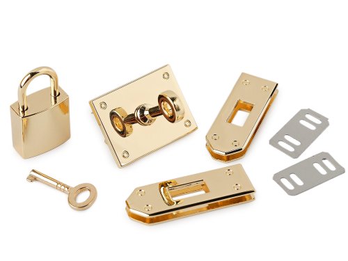 Speciální otočné zapínání se zámkem dodá každé kabelce a tašce nádech luxusu a elegance. Podobný styl zapínání můžete vidět u světoznámých značek. Vyniká originalitou a vysokou kvalitou. Zapínání se skládá ze čtyř hlavních dílů. Díl s tyčinkou a otočným očkem se připevňuje pomocí dvou plíšků, kterými ho k materiálu zajistíte. Další díly se připevňují pomocí přiložených šroubků na postranní řemínky kabelky. Řemínky jsou vhodné s šíří 15 mm.