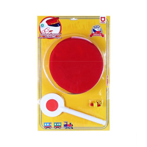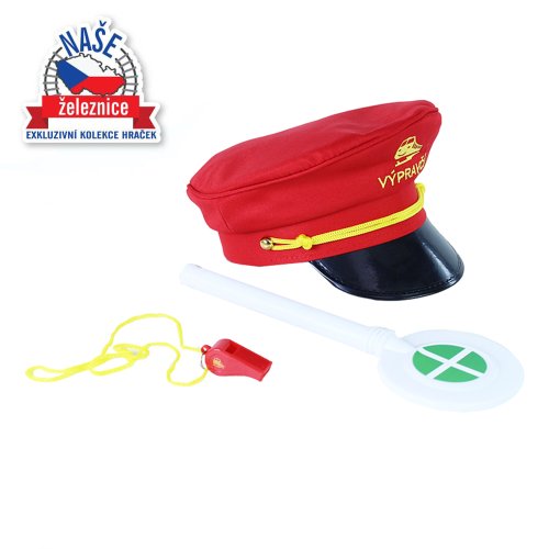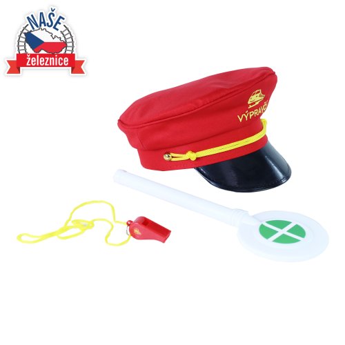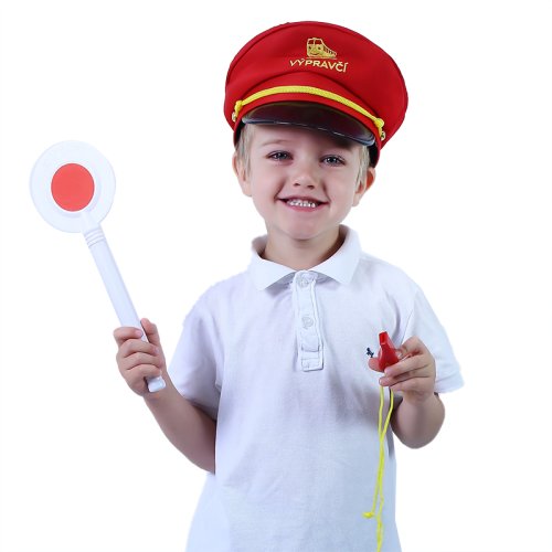 Jsi fanda do železnice? V tom případě ti nesmí chybět tato báječná sada výpravčího! Najdeš v ní stylovou červenou čepici s výšivkou, píšťalku a výpravku. Tak teď už jenom nasadit čepici, zapískat na píšťalku, zvednout výpravku a vlak může konečně vyjet ze stanice!