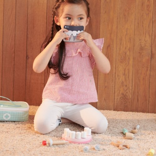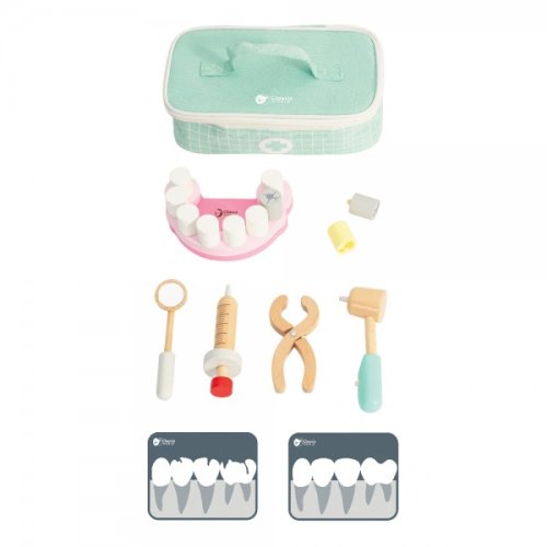 Hra na zubaře není jen jednou z her na role, ale také učením péče o hygienu a následků jejího nedostatku. Tento výrobek obsahuje 4 zubařské nástroje, 2 rentgenové karty, 8 zubů v držáku a 2 zuby navíc a tašku na uložení veškerého příslušenství. Budoucí lékaři mohou svým pacientům dávat injekce, extrahovat a kontrolovat stav jejich zubů. Rozměr balení: 22 x 7 x 15 cm Vhodné pro děti od 3 let
